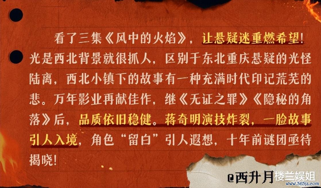 正如这部剧的剧名《风中的火焰》,让东说念主很容易插足到风沙四起的环境里,潜入感受故事背后的油腻“暮气”,从而体会运道的颓丧和苦处。