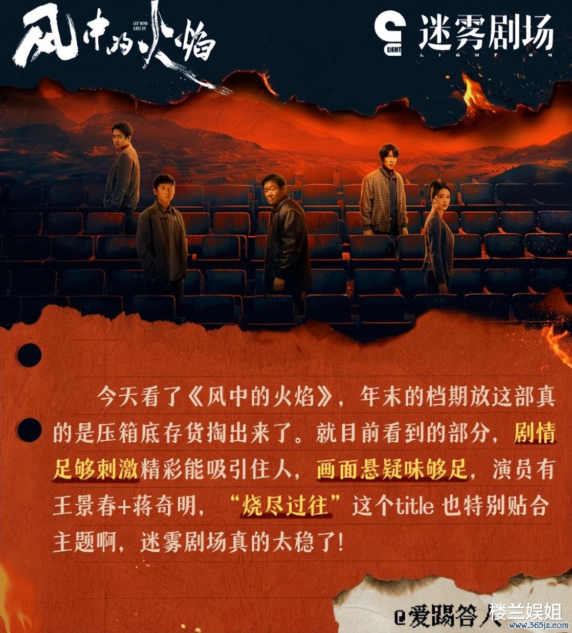 《风中的火焰》中的几位主演:王景春、蒋奇明、杨采钰、黄澄澄等等,也照实王人是好演员。