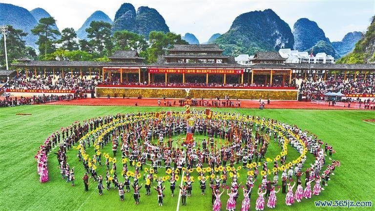 11月23日,广西柳州市融水苗族自治县民族体育公园,群众身着盛装参加民族文化展演行为,诱导了八方游客。黎寒池摄(中经视觉)