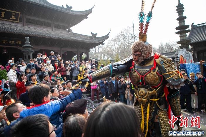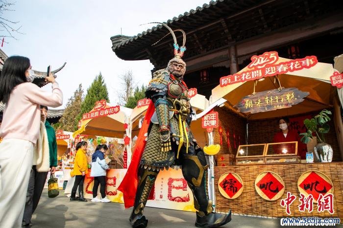 1月23日,黑传说悟空机甲行走在非遗商场。中新社记者 吴君毅 摄