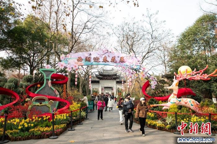 1月23日,西湖迎春花展游东说念主如织。中新社记者 吴君毅 摄
