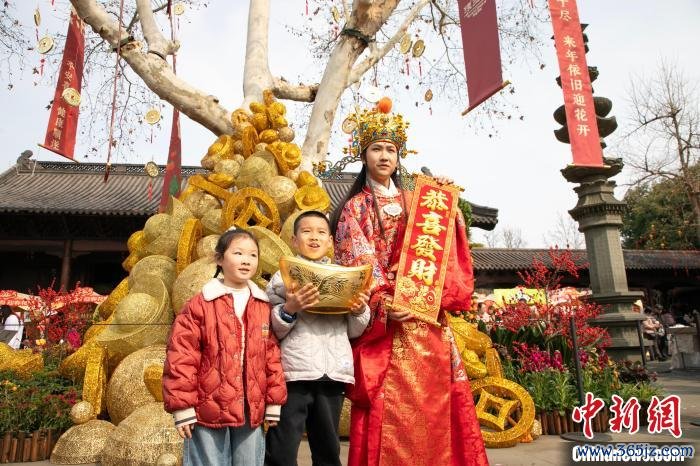 1月23日,小一又友与“财神爷”合影。中新社记者 吴君毅 摄