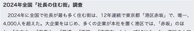 说明最新日媒走访,港区赤坂在2024年仍旧稳居日本雇主居住最多的地区。