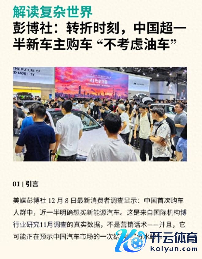 “第一次买车,根柢没看油车。” 彭博社的看望数据,给中国车市投下了一枚 “结构性变化” 的信号弹 —— 初次购车东说念主群中,超一半受访者明确 “不优先讨论燃油车”,这个来自好意思国媒体的安祥数据,正在改写年青一代的购车偏好开云(中国)kaiyun网页版登录入口,也让 “油电之争” 的天平透顶向电动端歪斜。