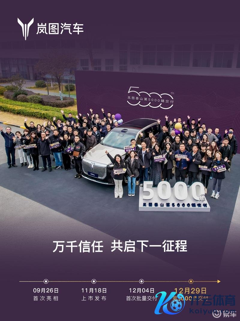 易车讯 岚图汽车日前告示,第5000辆郑重托福。岚图泰山于11月18日上市,共推出4款车型,售价37.99-50.99万元。12月4日开启初度批量托福,仅用时26天托福便达到5000台。