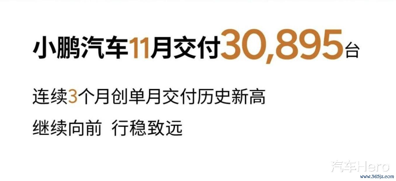 11月份,小鹏汽车11月共托付新车30895台,同比增长54%,环比增长29%。单月托付量初次松弛3万。
