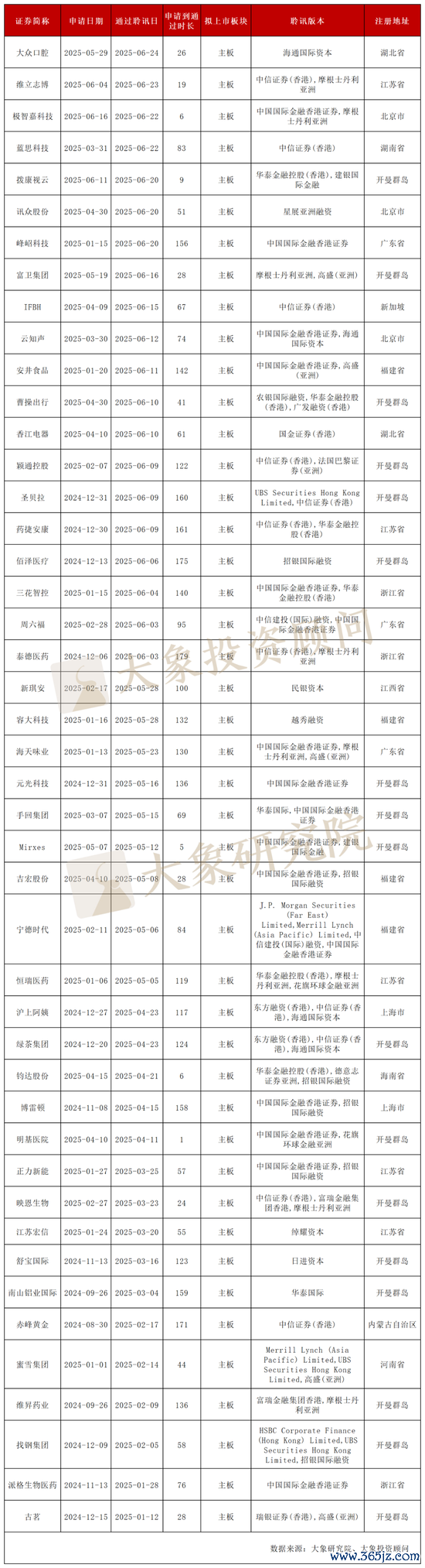 这45家企业从提交上市恳求到通过聆讯最短仅用了1天时分(明基病院2025年4月10日第三次向港交所递表,4月11日便通过聆讯),其中有11家仅用不到1个月时分。