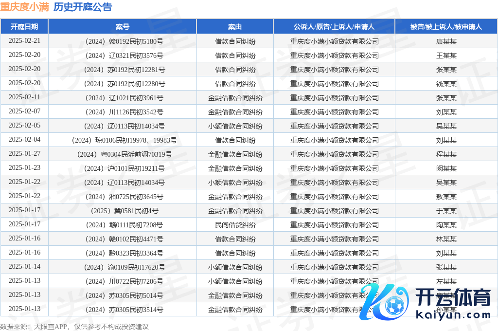 本站音讯,笔据天眼查APP透露,近日公布了一则重庆度小满小额贷款有限公司当作原告/上诉东说念主的开庭公告,从容本色如下: