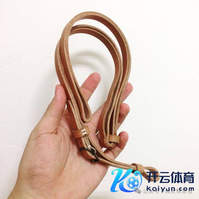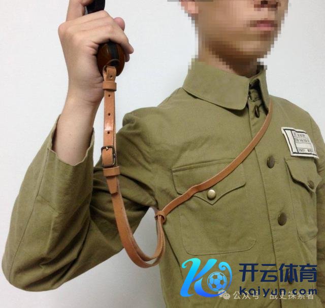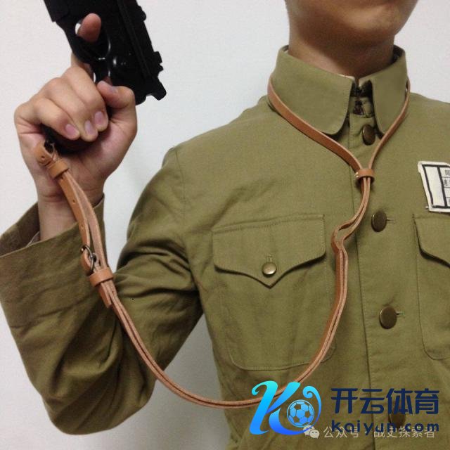 ▲毛瑟 C96 手枪皮革绳的使用方式(如图),即可接收斜挎,也可束在脖子上使用