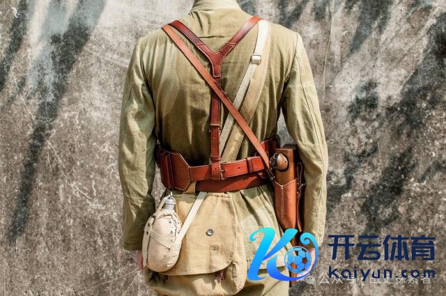 ▲ C96 手枪的" X "形皮制联排弹药包正、背面特写。图中模特还携有木制枪套以及水壶、面包袋等个东说念主装具