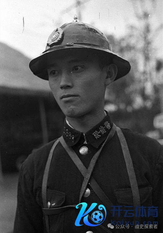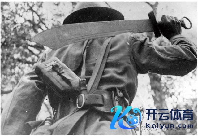 ▲曾被无良自媒体解读为"丈夫许国,无谓相送"的历史老相片。图中这名头顶英式钢盔的中国士兵,使用的即是 Y 形皮制联排弹药包