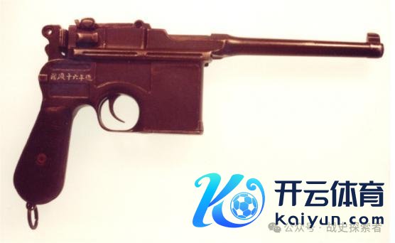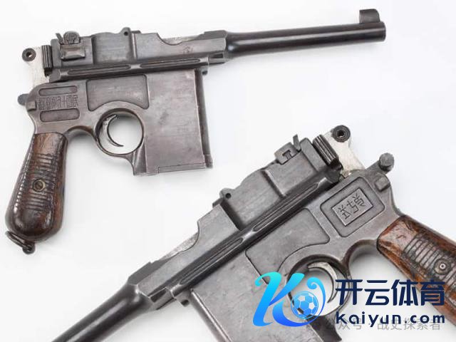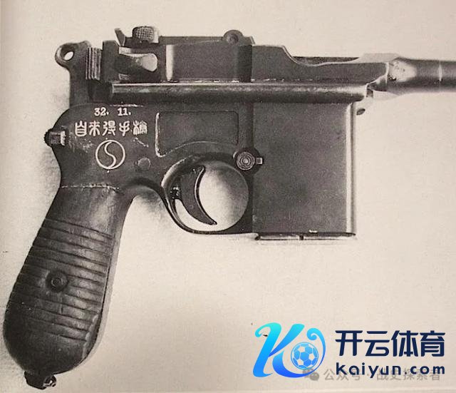 ▲一支在枪身上印有铭文的毛瑟 C96 手枪。可见" 32、11 以及‘自来得’手枪"字样(注:笔者不料志图中这个兵工场的类‘太极’形状铭文,如有读者清醒,可在留言中陈述)