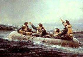 机长亨德森中尉以一个漂亮的姿势把 B-17 落到了海面上,人人陆续逃出了飞机,爬上了救生艇。