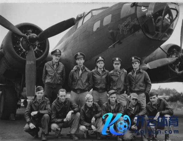 ▲"弹跳小杰西"号 B-17 的机构成员,前排左一是主东说念主公沃斯勒中士。