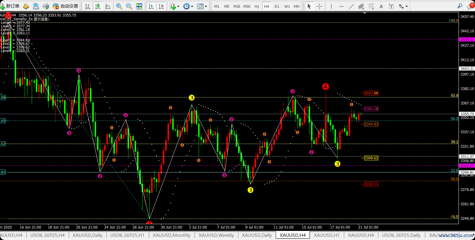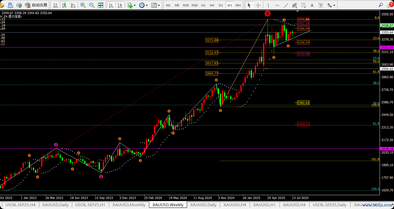 详尽而言:周线级别咱们本周逢低作念多为主,最好作念多点位在3332和3320隔壁,而标的点在3430隔壁。日线级别因为轰动,当今有两个作念多点区分是3343-45上方少许和3330-35区间。相连4小时当今的高位轰动,是以咱们第一波多单一定是在3342-45上方。因为早间价钱到达一次3344-45,是以暂时咱们只可普及到3350隔壁。