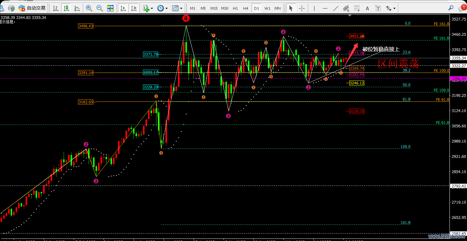【2】跌破3342-45后二次多在3330-3335区间,防范3324标的看3350-3370-3420