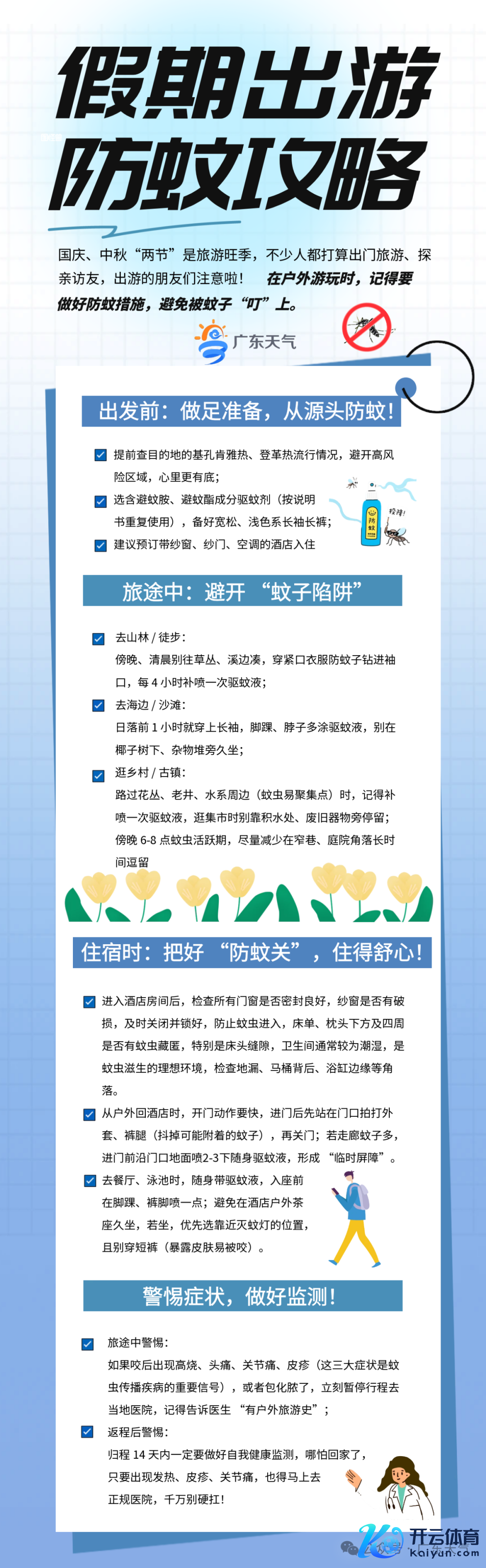 出行前出现发烧、头痛、要津痛、皮疹等症状,应实时到近邻正规医疗机构就诊,并取消行程。如会诊为“两热”,入院调治或严格居家拆开调治;行程中被蚊虫叮咬后出现高烧、化脓等症状,应立即暂停行程,前去当地病院就诊;返程前出现上述症状,应立即到当地正规医疗机构就诊。