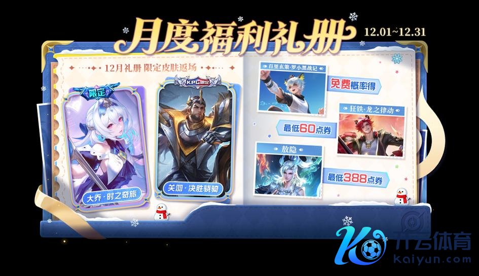 在12月的月度礼册依旧有阻挡皮肤返场,一款是大乔的时之奇旅皮肤,一款是关羽的KPL阻挡决胜骁骑,这里也曾比拟推选大乔的皮肤,这款皮肤的质地相配可以,要是梗概刷到扣头也曾很可以的,至于关羽的这款,也曾看个东说念主喜好了。