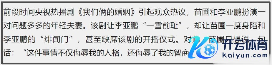 苗圃和李亚鹏曾勾搭过电视剧《咱们的婚配》,亦然老一又友了。因为在剧里演情侣,还一度被传出过绯闻,搞顺适时苗圃为了避嫌齐莫得出席开播典礼,过后被问起,苗圃酬劳称“这件事情不仅侮辱我的东谈主格,还侮辱了我的能力”。