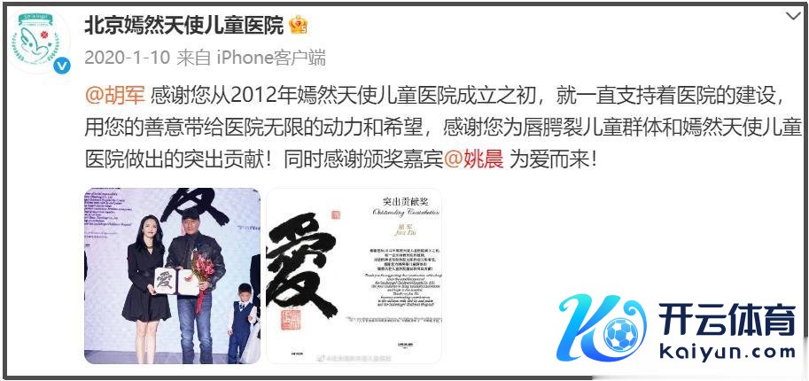 更是被邀请为授奖嘉宾,为给病院作念出凸起孝敬的胡军授奖。不错说姚晨和嫣然天神儿童病院的关联匪浅,也怪不得她会为李亚鹏发声,毕竟以前就曾温雅过这个样子。