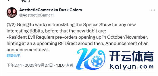 据外媒博主讯息欧洲杯体育,《生化危境》行将召开全新发布会,届时将有更多新骨子公开。