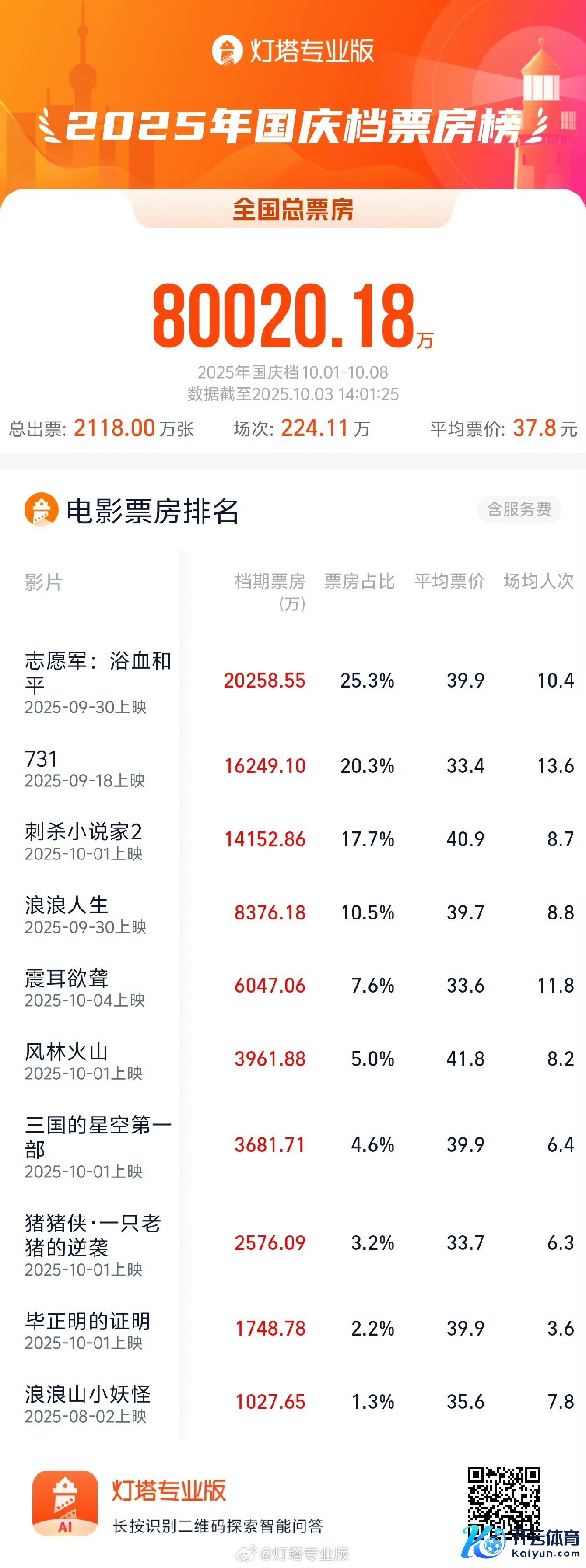 2025年国庆档总票房(含预售)冲突8亿2025年国庆档总票房(含预售)冲突8亿