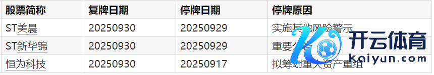 A股复牌指示:3股当天复牌欧洲杯体育A股复牌指示:3股当天复牌
