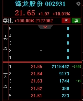 涨停板封单远超总股本,资金疯抢锋龙股份!