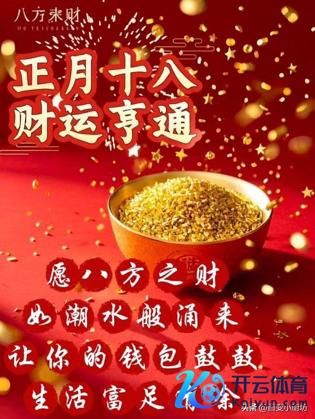 新一年,愿咱们都能借着正月十八的机会,收心归位、求实笃行、节俭抓家、祥和处世,以积极曙光的心态,卖头卖脚的行动,开启马年的奋进之路。无谓追求虚无的“好运”,只需守住分内、作念好我方,让每一份奋力都有薪金,每一份付出都有收获开云(中国)kaiyun网页版登录入口,隔离“一场空”,迎来满仓盈,全年吉祥喜乐、万事唾手。#天南大败地贺年#