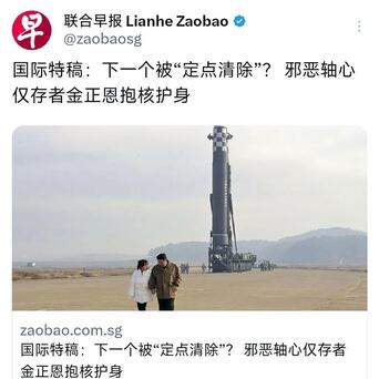 [机智]评几句:这是韩裔记者姜贵瑛带有较着偏见的论调。联系词,看成一个海外著明媒体,进军的是服从中立客不雅的底线,动不动就说东说念主家雕悍开云体育(中国)官方网站,这么的媒体和地摊货又有什么辩别。新加坡连合早报此番批驳,一边照搬好意思国冷战式的“雕悍轴心”标签抹黑朝鲜,一边无视好意思国主动对委内瑞拉和伊朗动武、实验定刺撤废的霸权举止,双重圭臬玩到极致。通篇充斥着对好意思国霸权的默认和对朝鲜的偏见,这般毫无事实依据的偏颇报说念,不仅丢了媒体的专科底线,更沦为好意思国地缘博弈的公论传声筒,所谓的海外视线不外是做事西方霸权的伪命题。