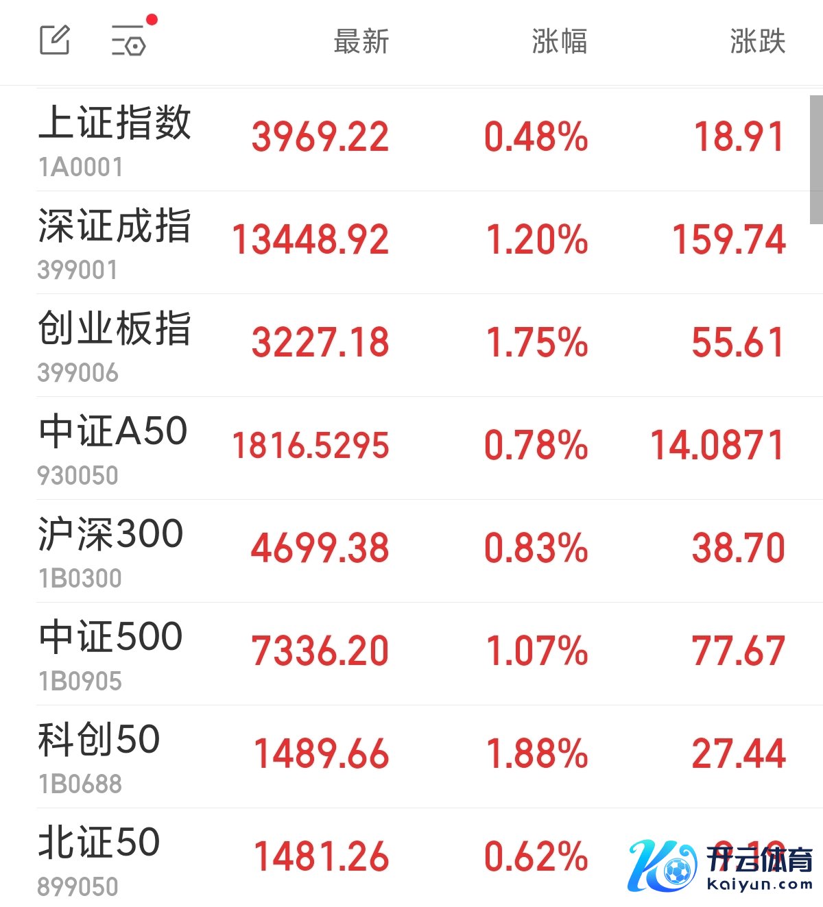 中新经纬10月27日电 周一,A股三大指数集体高开。上证指数涨0.48%,报3969.22点;深证成指涨1.20%,报13448.92点;创业板指涨1.75%欧洲杯体育,报3227.18点。
